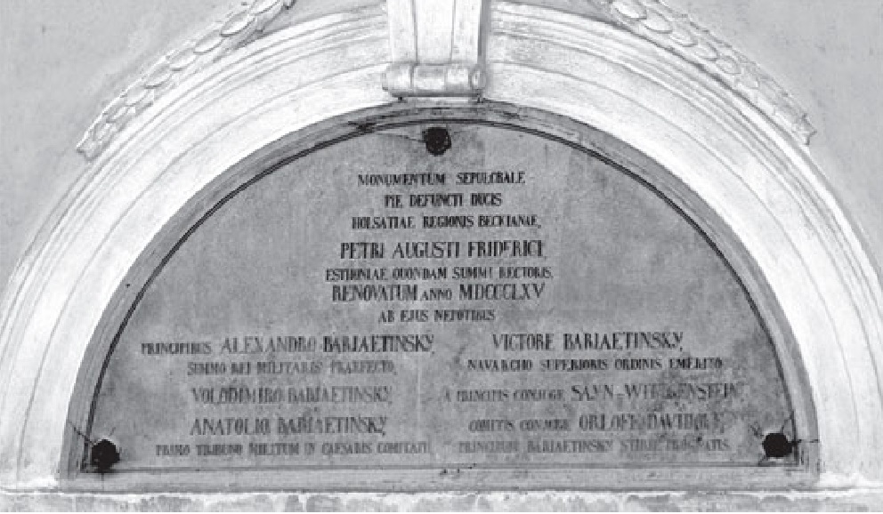 В 1864-м г. правнук Голштейн-Бека фельмаршал А.И. Барятинский отреставрировал часовню с прахом прадеда при церкви Св. Николая в Ревеле. От имени всех правнуков – своих сестер и братьев Барятинских – в тимпане было создано мемориальное посвящение (см. фото внизу).