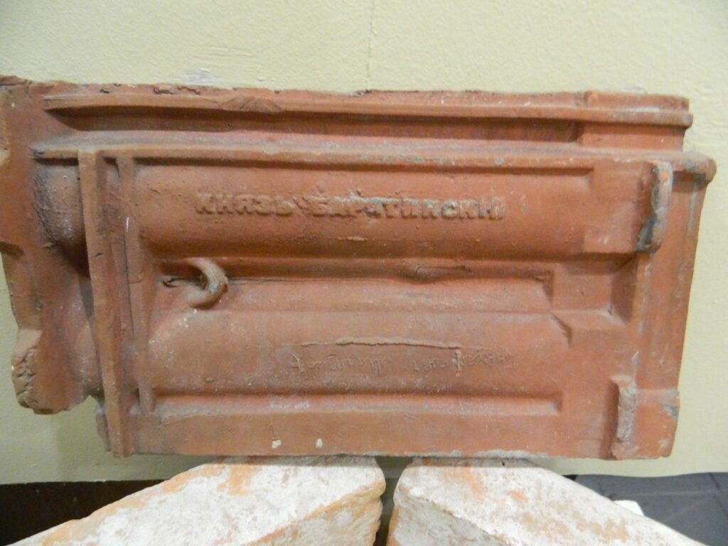 Вместе со своими сыновьями Иваном и Кириллом Наседкин изготовил несколько миллионов кирпичей с клеймом «КБ» (монограмма Барятинского: К – князь, Б – Барятинский).