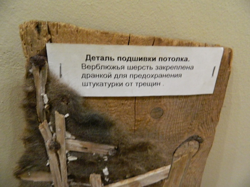 Из этого кирпича были построены все хозяйственные постройки, мостики, кирха, ротонда, перголы в парке, сам дворец. Перекрытия же во дворце деревянные, подшивка потолка была выполнена из верблюжьей шерсти. Это уникальный материал: прекрасная тепло- и звукоизоляция, шерсть хорошо впитывает влагу, а также считается, что запах шерсти не дает распространяться древесным паразитам»3.