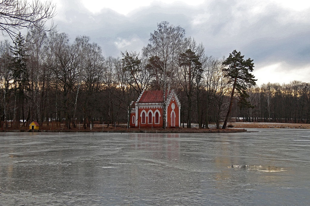 Кирха на острове Марьинского пруда. Современный вид.